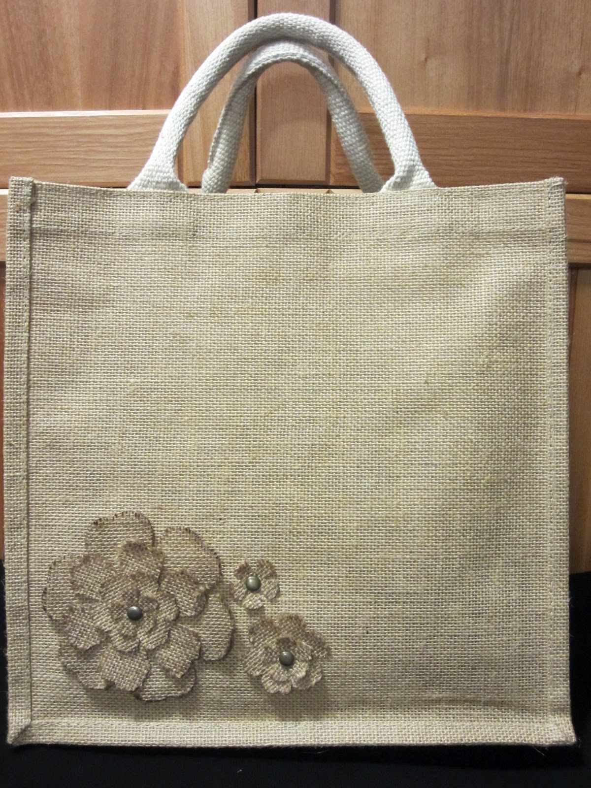 Your burlap flowers are wonderful and look so good on the bag. Only yesterday I threw out an old burlap bag as the lining was ruined - what was I thinking!!! lol