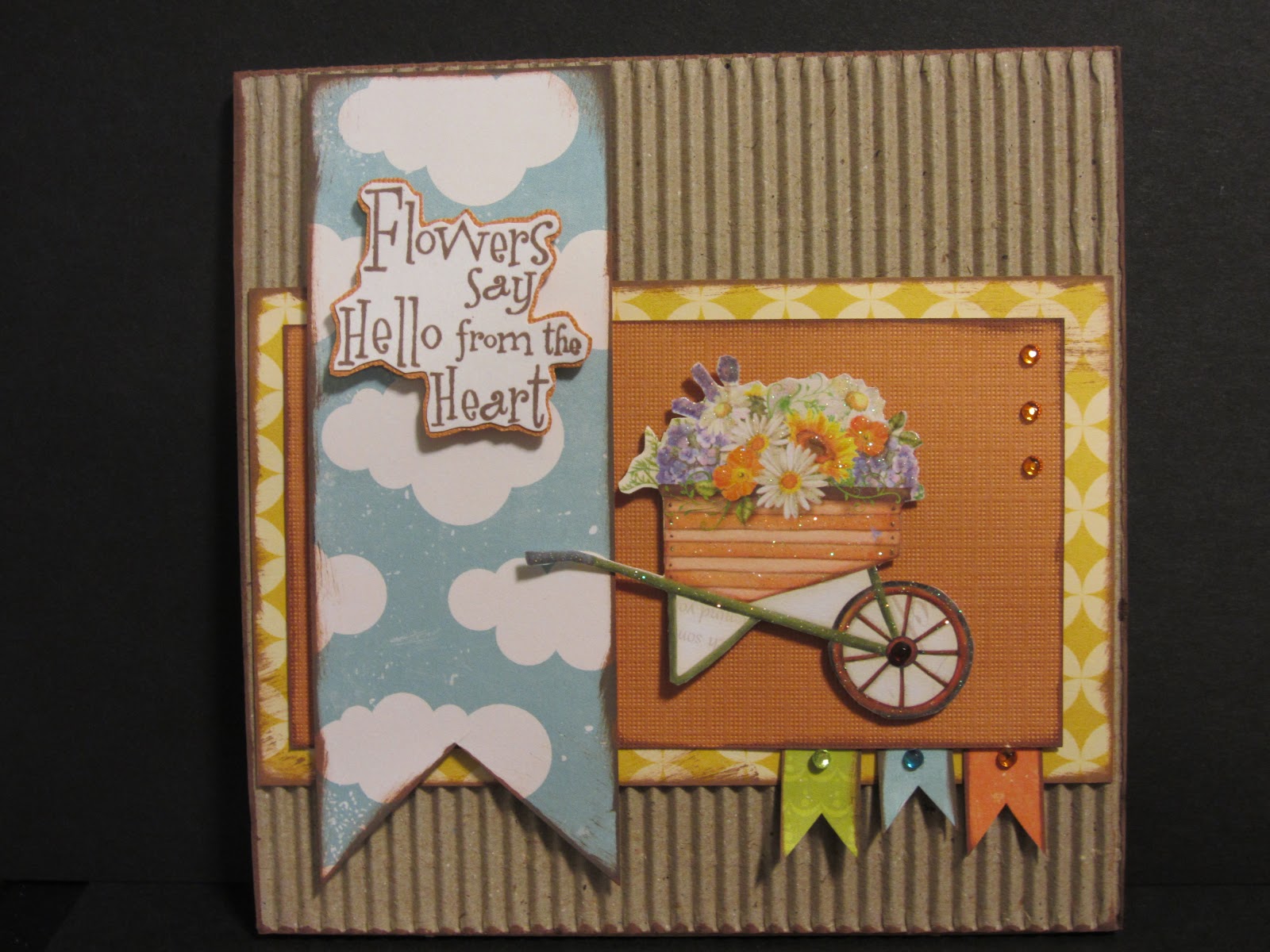 Fabulous and fun, great job on the sentiment -lol - eight times , you really are a perfectionist! Love the card with it's delightful clouds and the corrugated paper! Wonderfully done!