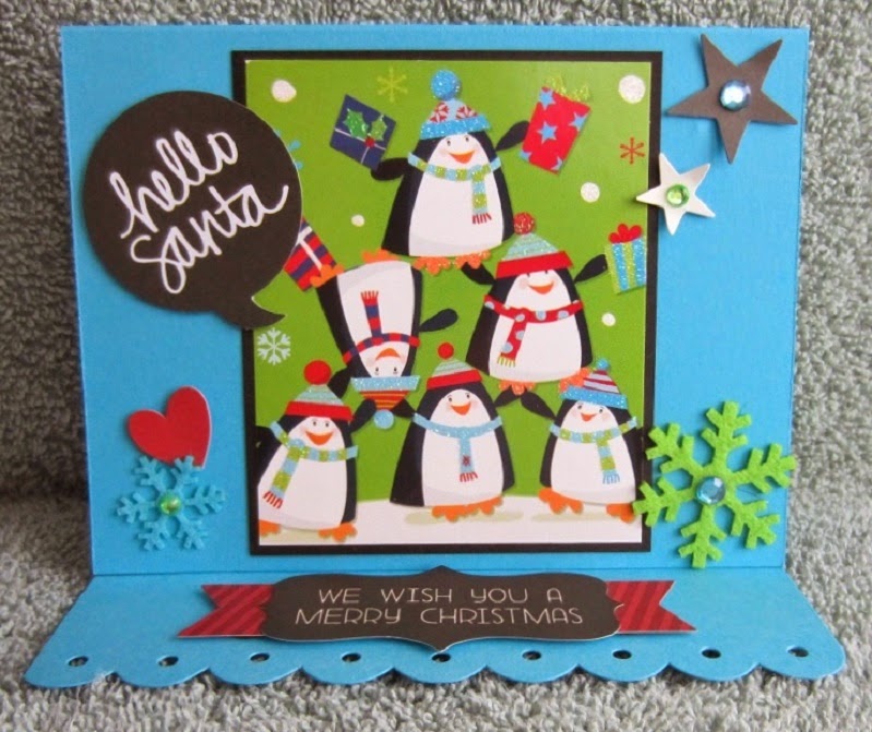 Your upscaled penguin tower is fabulous. I love the hello Santa sentiment and that you used such non-traditional colors.