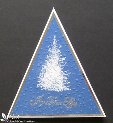 Pat @ Colourful Card Creations  has made this pretty tree fold card. I look forward to reading all about how to make it on her blog! The embossed trees and sentiment are so lovely.