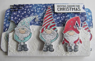 Sam has coloured up her gnomes so cute and I am loving that snowy sky and textured snow featured here.